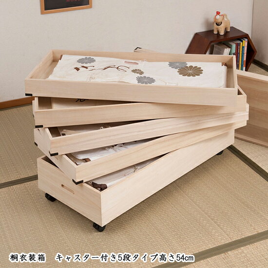 [桐衣装ケース キャスター付き] 浅型×3・深型×1 浅型×2・深型×2 浅型×4・深型×1 浅型×3・深型×2 桐製収納ケース 詳細 【商品名】 キャスター付き衣装箱5段 高さ54cm gb-rh0008 【サイズ】 本体:(約)幅91×奥行41×高さ54cm(キャスター5cm含む) 内寸:(約)幅88×奥行38×深さ(浅)6(深)11cm 【重量】 (約)9kg 【材質】 本体:天然木(桐材)、底板・天板:天然木桐化粧板 【仕様】 完成品(キャスターのみお客様取り付け) 【生産国】 中国 【区分】 収納家具 桐衣装箱 キャスター付き 5段タイプ 高さ54cm 調湿機能に優れた桐材は、衣類の収納に最適! 着物やカシミヤなど、大切な衣類の保管にはやっぱり桐。
