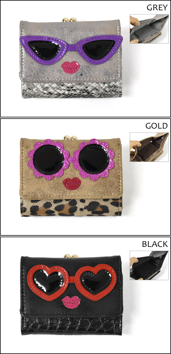 FLAPPER フラッパー フェイクレザー 眼鏡 アップリケ がま口 三つ折り ミニ財布 /三つ折り財布 ミニウォレット 合成皮革 合皮 革 レザー 財布 ミニ レディース 小さい 小さめ 大人 女性 かわいい 可愛い おしゃれ オシャレ 個性的 コンパクト めがね メガネ サングラス 顔/ p